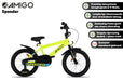 The Speeder from AMIGO is a really robust (cross) bike. For example, the frame of this boys' bike is not usually round but has clean angular lines. The 14-inch children's bike even resembles a motocross bike because of the sturdy fenders and the tires with rough tread and enormous grip. Cross town and country at high speeds on your new yellow and black Speeder! Psstt.... not a lot of cycling experience yet? The removable side wheels will give you the right balance. The pluses at a glance: [+] Smooth & effortless pedaling thanks to sealed bearings [+] Effective braking with back-pedal brake and V-brake [+] Long-lasting new value thanks to three double coating [+] Refined finish: stickers fixed under the lacquer [+] Stainless on the road thanks to stainless steel nuts and bolts [-] No stand available when removing the side wheels (available separately) Smooth pedaling and safe through traffic The pedals at AMIGO go around easily, thanks to sealed bearings in the pedals. This allows you to pedal effortlessly and move forward easily, even with children's legs! The bike features a 1-piece crank, a solid choice for young cyclists. The entire pedaling system is neatly hidden behind a closed chaincase. Super safe and low maintenance. Finally, the stainless steel nuts and bolts ensure that your new bike will remain rust-free for years. A convincing braking system On our Speeder you naturally go super fast, which of course requires effective and safe braking. With the coaster brake you stand still immediately. Do you want to brake more specifically or reduce speed a little? Then use the V-Brake on the aluminum front rim, which is a lot more powerful than a regular pinch brake. In addition to a lubricated ride, you also want to feel safe on the bike. With the help of the reflectors at the front, rear, on the spokes and even on the pedals, you will be highly visible! ROBUST, even in the long run! The strong steel frame and steel fenders are coated with no less than three coats of paint, which means the bike stays beautiful even when falling down and standing up. Even the decals are covered with paint, which keeps the design intact year after year On top of that, both the handlebars and the saddle are adjustable in height. A durable idea, because you can ride around on this 14 inch boys bike (with frame size of 24 centimeters) for a long time. Suitable for ages between three and five. AMIGO, ready to move AMIGO gets you moving! With products with a fun and fresh design, at a surprisingly low price. The AMIGO collection consists of (electric) bikes, bike parts and accessories, scooters, skates, balance bikes and trampolines. Because we develop AMIGO products ourselves and buy them directly from the factory, we can guarantee not only good quality, but also a good price! So AMIGO also makes your free time just that little bit more fun. AMIGO, ready to move! General Specifications: Color: yellow, black Gender: boys Material frame: steel Material rims: aluminum Material fenders: steel Tires: pneumatic tires (black) Age indication: 3 to 5 years Weight: approx. 9.6 kg Specifications sizes: Wheel size: 14 inches Frame size: 24 cm Suitable for body height: 98-108 cm Saddle height: 48 cm (in the lowest position, measured from the ground) Adjustable saddle height: yes Height-adjustable handlebar: yes Brake specifications: Front brake type: V-Brake Rear brake type: back-pedal brake Lighting specifications: Lighting front: reflector Lighting rear: reflector Specifications accessories: Mudguards: yes, above front and rear wheel Side wheels: yes, detachable Chainguard: closed Bell: yes