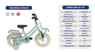 Touring around on a transport bike with front carrier like your big sister or mom? Now you can too with the AMIGO Bella! As the name suggests, a beautiful girls' bike with a classic transport design. This 14-inch children's bike has a matte, pastel green color, which is totally contemporary. The brown handles and saddle, combined with the cream tires and flowers on the chaincase, give it a chic finish. Already more advanced with exercise? Then try a lap without the side wheels. The pluses at a glance: [+] Smooth & effortless pedaling thanks to sealed bearings [+] Effective braking with back-pedal brake and V-brake [+] Long-lasting new value thanks to three double coating [+] Refined finish: stickers fixed under the lacquer [+] Stainless on the road thanks to stainless steel nuts and bolts [+] Tip! Combine with matching size bike crate or basket (not included) [-] No stand available when removing the side wheels (available separately) Smooth pedaling and safe through traffic The pedals at AMIGO go round easily, thanks to sealed bearings in the pedals. This allows you to pedal effortlessly and move forward easily, even with children's legs! The bike features a 1-piece crank, a solid choice for young cyclists. The entire pedaling system is neatly hidden behind a closed chaincase. Super safe and low maintenance. Finally, the stainless steel nuts and bolts ensure that your new bike will remain rust-free for years. A convincing braking system On our Bella you naturally go super fast, which of course requires effective and safe braking. With the coaster brake you stand still immediately. Do you want to brake more specifically or reduce speed a little? Then use the V-Brake on the aluminum front rim, which is a lot more powerful than a regular pinch brake. In addition to a lubricated ride, you also want to feel safe on the bike. With the help of the reflectors at the front, rear, on the spokes and even on the pedals, you will be highly visible! ROBUST, even in the long run! The strong steel frame and steel fenders are coated with no less than three coats of paint, which means the bike stays beautiful even when falling down and standing up. Even the decals are covered with paint, so the design remains unaffected year after year On top of that, both the handlebars and the saddle are adjustable in height. A durable idea, because you can keep riding around on this 14 inch girls bike (with frame size of 24 centimeters) for a long time. Suitable for ages between three and five. AMIGO, ready to move AMIGO gets you moving! With products with a fun and fresh design, at a surprisingly low price. The AMIGO collection consists of (electric) bikes, bike parts and accessories, scooters, skates, balance bikes and trampolines. Because we develop AMIGO products ourselves and buy them directly from the factory, we can guarantee not only good quality, but also a good price! So AMIGO also makes your free time just that little bit more fun. AMIGO, ready to move! General specifications: Color: green Gender: girls Material frame: steel Material rims: aluminum Material fenders: steel Material front carrier: steel Tires: pneumatic tires (cream) Age indication: 3 to 5 years Weight: approx. 11 kg Specifications sizes: Wheel size: 14 inches Frame size: 24 cm Suitable for body height: 98-108 cm Adjustable saddle height: yes Handlebar adjustable in height: yes Brake specifications: Front brake type: V-Brake Rear brake type: back-pedal brake Lighting specifications: Lighting front: reflector Lighting rear: reflector Specifications accessories: Mudguards: yes, above front and rear wheel Side wheels: yes, detachable Chain guard: closed Carrier: yes Front carrier: yes Bell: yes