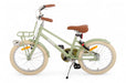 Also crazy about the vintage look of the AMIGO Urban? The girl's bike looks nostalgic but is technically very modern. For example, the green frame is made of lightweight aluminum. Exceptional for a children's bike! The pastel color has a subtle glossy finish and is combined with classic silver hardware such as the retro headlight. But the brown saddle, handles and cream-colored tires are also a good match. On the 18-inch transport bike with front carrier you can take all your (school) stuff with you! The pluses at a glance: [+] '3-piece crank' for the smoothest riding experience [+] Effective braking power with back-pedal brake and V-Brake [+] Long-lasting new value thanks to three double coating [+] Refined finish: stickers fixed under the lacquer [+] Stainless on the road thanks to stainless steel bolts and nuts [+] Ring lock and stand included Park anywhere safely and quickly! [+] Aluminum frame is lighter than steel and more resistant to rust [+] Tip! Combine with matching bike crate or basket (not included) Unimpeded by traffic Thanks to the 3-piece crank, pedaling movements feel smooth like you can't experience on any other children's bike. Such a 3-piece crank consists of separate parts, making movements more streamlined than with a single piece crank that is forged in one piece. In addition, the 3-piece crank also has a much longer lifespan. The entire pedal system is neatly hidden behind the gun-type chaincase. Finally, the stainless steel bolts and nuts ensure that your new bike will remain rust-free for years to come. A convincing brake system On our Urban you naturally go super fast, which of course requires an effective and safe braking result. With the back-pedal brake you stand still immediately. Would you like to brake more specifically or reduce speed a little? Then use the V-Brake on the aluminum front rim, which is a lot more powerful than a regular pinch brake. In addition to a lubricated ride, you also want to sit on your bike feeling safe. With the help of the front and rear battery lights, reflectors on the spokes and even on the pedals, you'll be highly visible! Psstt. on this inch size is a stand and a ring lock mounted, so you can park the bike anywhere, safely and quickly. ROBUST, also in the long run! The lightweight aluminum frame and steel fenders are coated with no less than three layers of paint, so the bike stays beautiful even when falling down and standing up. Even the decals are covered with paint, which keeps the design intact year after year On top of that, both the handlebars and the saddle are adjustable in height. A durable idea, because you can ride around on this 18 inch girls bike (with frame size of 27 centimeters) for a long time. Suitable for ages between five and seven. AMIGO, ready to move AMIGO gets you moving! With products with a fun and fresh design, at a surprisingly low price. The AMIGO collection consists of (electric) bikes, bike parts and accessories, scooters, skates, balance bikes and trampolines. Because we develop AMIGO products ourselves and buy them directly from the factory, we can guarantee not only good quality, but also a good price! So AMIGO also makes your free time just that little bit more fun. AMIGO, ready to move! General specifications: Color: green Gender: girls Material frame: aluminium Material rims: aluminum Material fenders: steel Material front carrier: steel Tires: pneumatic tires (cream) Age indication: 5 to 7 years Weight: approx. 11.2 kg Specifications sizes: Wheel size: 18 inches Frame size: 27 cm Suitable for body height: 110-123 cm Saddle height: 59 cm (in the lowest position, measured from the ground) Adjustable saddle height: yes Height-adjustable handlebar: yes Brake specifications: Front brake type: V-Brake Rear brake type: back-pedal brake Lighting specifications: Lighting front: retro headlight (battery lighting) Lighting rear: battery lighting Reflectors: yes, on the spokes and pedals Specifications accessories: Mudguards: yes, above front and rear wheel Chain guard: pistol type Bike stand: yes Front carrier: yes Bell: yes Lock: ring lock