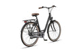 The Altec Marquant women's bike is a solid city bike with which riding is a true pleasure! Daily rides to school or work are no problem at all. The matte black frame is very sturdy and made of steel. Therefore, the bike can certainly take a beating. The rims consist of double-walled aluminum and are therefore resistant to rust. Your seating position will be pleasant due to the shape of the saddle and handlebars. Covering long distances comfortably is no problem for the Altec Marquant. This is thanks to the 3 Shimano Nexus gears. The cycling pace and pedaling heaviness is thus always easy to control. Using the V-brake hand brakes, safe braking is no problem at all. In the dark, the LED lighting ensures that you remain highly visible. Specifications general: Frame color: matt black Color model: Matt Black Gender: ladies Material frame: steel Material rim: aluminum (double walled) Wheel size: 28 inch Frame size: 56 cm Handlebar stem: fixed Seat post suspension: no Suspension fork: no Weight: approx. 24 kg Gear specifications: Gears: 3 (Shimano Nexus) Gear type: hub gear Drive: chain Brake specifications: Front brake type: V-Brake Type rear brake: V-Brake Lighting specifications: Front lights: battery-operated lights Lighting rear: battery lighting Specifications accessories: Bike stand: single Chain guard: half closed Luggage carrier: yes Bell: yes Lock: ring lock