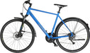 For daily commutes, quick shopping trips and spirited weekend rides, our Winora Domingo 27 Sport is always ready to go. Thanks to the sporty geometry and SR Suntour suspension fork, you're also well equipped for light off-road use. With the perfect power transfer from Shimano's 27-speed Alivio drivetrain, you can conquer even the steepest climbs, and the easy-to-use hydraulic disc brakes bring you reliably to a stop again on the descent - in all weather conditions. This trekking bike features a high-frame in the stylish color Infinity Blue Matt. Specifications general: Frame color: blue, black Model color: Infinity Blue Matt Model type: Winora Domingo 27 Sport (WDFN1) Gender: men Material frame: Aluminum Material rim: aluminum (double-walled) Tires: Schwalbe Land Cruiser with reflection, 42-622 (black) Saddle: Winora Sport, adjustable height (black) Grips: XLC (black) Wheel size: 28 inch Frame size: 60 cm Handlebar stem: fixed Suspension seat post: no Suspension fork: yes, with Speed Lock (SR Suntour NEX HLO) Load capacity: 130 kg Gear specifications: Crankset: Triple Gears: 27 Gear type: derailleur Derailleur type: Shimano Acera (3 speed) & Alivio (9 speed) Drive: chain Brake specifications: Front brake type: hydraulic disc brakes (Tektro) Rear brake type: hydraulic disc brakes (Tektro) Lighting Specifications: Front lights: AXA Compactline 35 Switch (works on hub dynamo) Lighting rear: Herrmans H-Trace Mini (works on hub dynamo) StVZO hallmark: yes (V/A) Accessories specifications: Bike stand: side stand Chain guard: none Bell: yes Lock: none