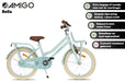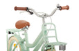 Touring around on a transport bike with front carrier like your big sister or mom? Now you can too with the AMIGO Bella! As the name suggests, a beautiful girls' bike with a classic transport design. This 16-inch children's bike has a matte, pastel green color, which is totally contemporary. The brown handles and saddle, combined with the cream tires and flowers on the chaincase, give it a chic finish. Already more advanced with exercise? Then try a lap without the side wheels. The pluses at a glance: [+] Smooth & effortless pedaling thanks to sealed bearings [+] Effective braking with back-pedal brake and V-brake [+] Long-lasting new value thanks to three double coating [+] Refined finish: stickers fixed under the lacquer [+] Stainless on the road thanks to stainless steel nuts and bolts [+] Tip! Combine with matching size bike crate or basket (not included) [-] No stand available when removing the side wheels (available separately) Smooth pedaling and safe through traffic The pedals at AMIGO go round easily, thanks to sealed bearings in the pedals. This allows you to pedal effortlessly and move forward easily, even with children's legs! The bike features a 1-piece crank, a solid choice for young cyclists. The entire pedaling system is neatly hidden behind a closed chaincase. Super safe and low maintenance. Finally, the stainless steel nuts and bolts ensure that your new bike will remain rust-free for years. A convincing braking system On our Bella you naturally go super fast, which of course requires effective and safe braking. With the coaster brake you stand still immediately. Do you want to brake more specifically or reduce speed a little? Then use the V-Brake on the aluminum front rim, which is a lot more powerful than a regular pinch brake. In addition to a lubricated ride, you also want to feel safe on the bike. With the help of the reflectors at the front, rear, on the spokes and even on the pedals, you will be highly visible! ROBUST, even in the long run! The strong steel frame and steel fenders are coated with no less than three coats of paint, which means the bike stays beautiful even when falling down and standing up. Even the decals are covered with paint, so the design remains unaffected year after year On top of that, both the handlebars and the saddle are adjustable in height. A durable idea, because you can keep riding around on this 16 inch girls bike (with frame size of 26 centimeters) for a long time. Suitable for ages four to six. AMIGO, ready to move AMIGO gets you moving! With products with a fun and fresh design, at a surprisingly low price. The AMIGO collection consists of (electric) bikes, bike parts and accessories, scooters, skates, balance bikes and trampolines. Because we develop AMIGO products ourselves and buy them directly from the factory, we can guarantee not only good quality, but also a good price! So AMIGO also makes your free time just that little bit more fun. AMIGO, ready to move! General specifications: Color: green Gender: girls Material frame: steel Material rims: aluminum Material fenders: steel Material front carrier: steel Tires: pneumatic tires (cream) Age indication: 4 to 6 years Weight: approx. 12.4 kg Specifications sizes: Wheel size: 16 inches Frame size: 26 cm Suitable for body height: 103-118 cm Adjustable saddle height: yes Handlebar adjustable in height: yes Brake specifications: Front brake type: V-brake Rear brake type: back-pedal brake Lighting specifications: Lighting front: reflector Lighting rear: reflector Specifications accessories: Mudguards: yes, above front and rear wheel Side wheels: yes, detachable Chainguard: closed Carrier: yes Front carrier: yes Bell: yes