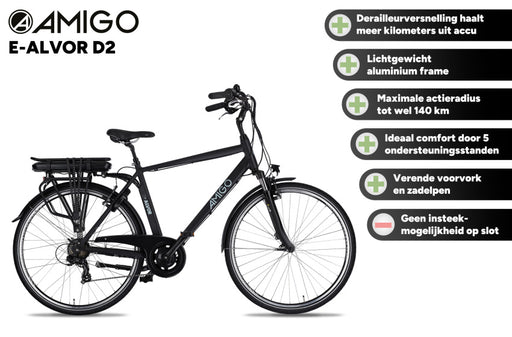 Experience the perfect mix of sportiness and practical use with the AMIGO E-Alvor D2 e-bike. The city bike for daily use that is also attractively ...