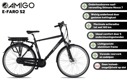 Discover the timeless AMIGO E-Faro S2 e-bike: the versatile, practical city bike. Its no-nonsense character makes this electric bike perfect for ev...