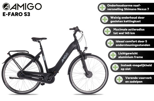 Discover the timeless AMIGO E-Faro S3 e-bike: the versatile, practical city bike. Thanks to the cleverly positioned battery, the bike is well balan...