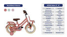 Touring around on a transport bike with front carrier like your big sister or mom? Now you can too with the AMIGO Bella! As the name suggests, a beautiful girls' bike with a classic transport design. This 12 inch children's bike has a matte, salmon pink color, which is totally contemporary. The brown handles and saddle, combined with the cream tires and flowers on the chaincase, give it a chic finish. Already more advanced with exercise? Then try a lap without the side wheels. The pluses at a glance: [+] Smooth & effortless pedaling thanks to sealed bearings [+] Effective braking with back-pedal brake and V-brake [+] Long-lasting new value thanks to three double coating [+] Refined finish: stickers fixed under the lacquer [+] Stainless on the road thanks to stainless steel nuts and bolts [+] Tip! Combine with matching size bike crate or basket (not included) [-] No stand available when removing the side wheels (available separately) Smooth pedaling and safe through traffic The pedals at AMIGO go round easily, thanks to sealed bearings in the pedals. This allows you to pedal effortlessly and move forward easily, even with children's legs! The bike features a 1-piece crank, a solid choice for young cyclists. The entire pedaling system is neatly hidden behind a closed chaincase. Super safe and low maintenance. Finally, the stainless steel nuts and bolts ensure that your new bike will remain rust-free for years. A convincing braking system On our Bella you naturally go super fast, which of course requires effective and safe braking. With the coaster brake you stand still immediately. Do you want to brake more specifically or reduce speed a little? Then use the V-Brake on the aluminum front rim, which is a lot more powerful than a regular pinch brake. In addition to a lubricated ride, you also want to feel safe on the bike. With the help of the reflectors at the front, rear, on the spokes and even on the pedals, you will be highly visible! ROBUST, even in the long run! The strong steel frame and steel fenders are coated with no less than three coats of paint, which means the bike stays beautiful even when falling down and standing up. Even the decals are covered with paint, so the design remains unaffected year after year On top of that, both the handlebars and the saddle are adjustable in height. A durable idea, because you can keep riding around on this 12 inch girls bike (with a frame size of 21 centimeters) for a long time. Suitable for ages between two and four. AMIGO, ready to move AMIGO gets you moving! With products with a fun and fresh design, at a surprisingly low price. The AMIGO collection consists of (electric) bikes, bike parts and accessories, scooters, skates, balance bikes and trampolines. Because we develop AMIGO products ourselves and buy them directly from the factory, we can guarantee not only good quality, but also a good price! So AMIGO also makes your free time just that little bit more fun. AMIGO, ready to move! General Specifications: Color: salmon pink Gender: girls Material frame: steel Material rims: aluminum Material fenders: steel Material front carrier: steel Tires: pneumatic tires (cream) Age indication: 2 to 4 years Weight: approx. 10 kg Specifications sizes: Wheel size: 12 inches Frame size: 21 cm Suitable for body height: 90-105 cm Adjustable saddle height: yes Handlebar adjustable in height: yes Brake specifications: Front brake type: V-Brake Rear brake type: back-pedal brake Lighting specifications: Lighting front: reflector Lighting rear: reflector Specifications accessories: Mudguards: yes, above front and rear wheel Side wheels: yes, detachable Chain guard: closed Carrier: yes Front carrier: yes Bell: yes