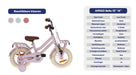 Touring around on a transport bike with front carrier like your big sister or mom? Now you can too with the AMIGO Bella! As the name suggests, a beautiful girls' bike with a classic transport design. This 14 inch children's bike has a matte pink color, which is totally contemporary. The brown handles and saddle, combined with the cream tires and flowers on the chain guard, give it a chic finish. Already more advanced with exercise? Then try a lap without the side wheels. The pluses at a glance: [+] Smooth & effortless pedaling thanks to sealed bearings [+] Effective braking with back-pedal brake and V-brake [+] Long-lasting new value thanks to three double coating [+] Refined finish: stickers fixed under the lacquer [+] Stainless on the road thanks to stainless steel nuts and bolts [+] Tip! Combine with matching size bike crate or basket (not included) [-] No stand available when removing the side wheels (available separately) Smooth pedaling and safe through traffic The pedals at AMIGO go round easily, thanks to sealed bearings in the pedals. This allows you to pedal effortlessly and move forward easily, even with children's legs! The bike features a 1-piece crank, a solid choice for young cyclists. The entire pedaling system is neatly hidden behind a closed chaincase. Super safe and low maintenance. Finally, the stainless steel nuts and bolts ensure that your new bike will remain rust-free for years. A convincing braking system On our Bella you naturally go super fast, which of course requires effective and safe braking. With the coaster brake you stand still immediately. Do you want to brake more specifically or reduce speed a little? Then use the V-Brake on the aluminum front rim, which is a lot more powerful than a regular pinch brake. In addition to a lubricated ride, you also want to feel safe on the bike. With the help of the reflectors at the front, rear, on the spokes and even on the pedals, you will be highly visible! ROBUST, even in the long run! The strong steel frame and steel fenders are coated with no less than three coats of paint, which means the bike stays beautiful even when falling down and standing up. Even the decals are covered with paint, so the design remains unaffected year after year On top of that, both the handlebars and the saddle are adjustable in height. A durable idea, because you can keep riding around on this 14 inch girls bike (with frame size of 24 centimeters) for a long time. Suitable for ages between three and five. AMIGO, ready to move AMIGO gets you moving! With products with a fun and fresh design, at a surprisingly low price. The AMIGO collection consists of (electric) bikes, bike parts and accessories, scooters, skates, balance bikes and trampolines. Because we develop AMIGO products ourselves and buy them directly from the factory, we can guarantee not only good quality, but also a good price! So AMIGO also makes your free time just that little bit more fun. AMIGO, ready to move! General specifications: Color: pink Gender: girls Material frame: steel Material rims: aluminum Material fenders: steel Material front carrier: steel Tires: pneumatic tires (cream) Age indication: 3 to 5 years Weight: approx. 11 kg Specifications sizes: Wheel size: 14 inches Frame size: 24 cm Suitable for body height: 98-108 cm Adjustable saddle height: yes Handlebar adjustable in height: yes Brake specifications: Front brake type: V-Brake Rear brake type: back-pedal brake Lighting specifications: Lighting front: reflector Lighting rear: reflector Specifications accessories: Mudguards: yes, above front and rear wheel Side wheels: yes, detachable Chain guard: closed Carrier: yes Front carrier: yes Bell: yes